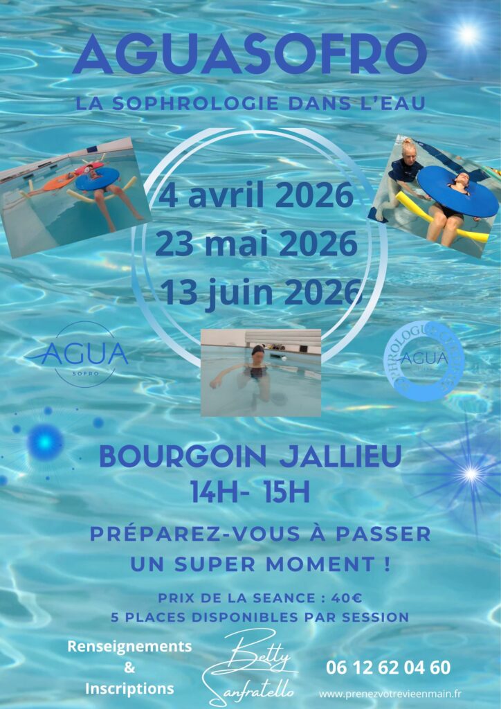 - Tagged with : aguasofro, aguasofro38nordisère, aquasofro, aquasophro, biendanssoncorps, bienetre, bienetreaquatique, Bourgoin, bourgoinjallieu, cremieu, développementpersonnel, eauthérapie, equilibremental, harmonieaquatique, latourdupin, lisledabeau, Morestel, nordisère, relaxation, relaxationeneau, respirationconsciente, santébleue, sérénité, Sophrologie, sophrologieaquatique, sophrologieauthentique, sophrologiecaycedienne, zen, zénitudeaquatique