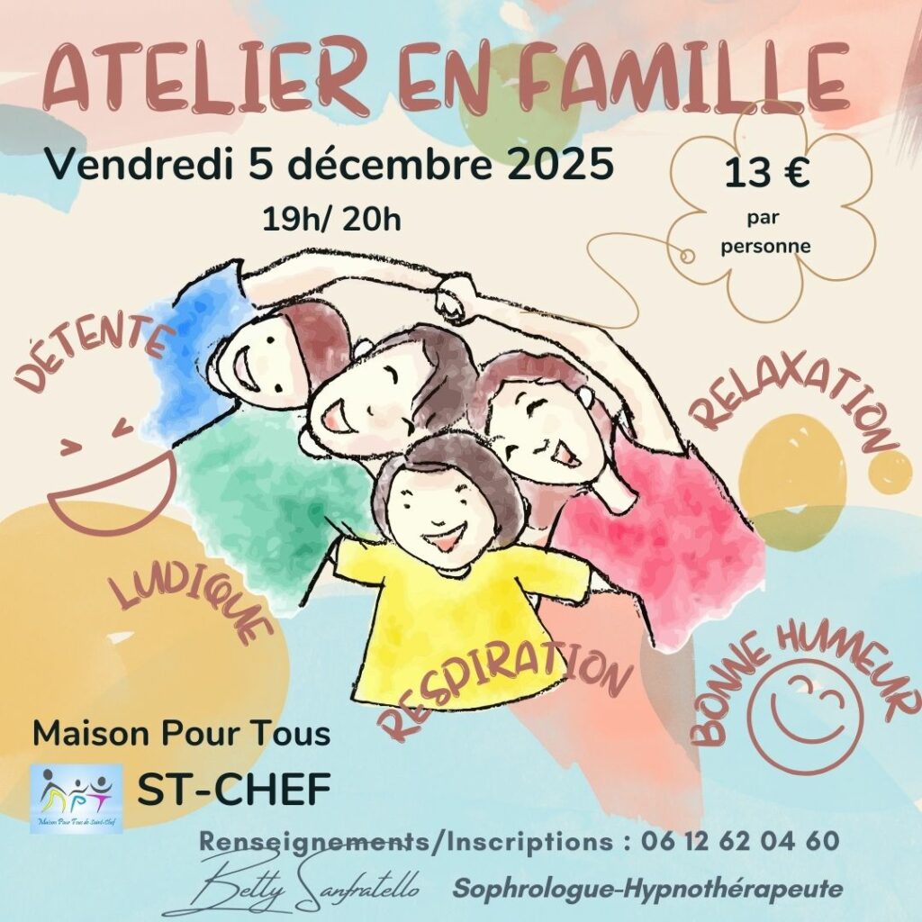 ☘ 𝒬𝒰𝐸 𝐹𝒜𝐼𝑅𝐸 𝐸𝒩 𝐹𝒜𝑀𝐼𝐿𝐿𝐸 à 𝒮𝒯-𝒞𝐻𝐸𝐹 ☘ ⁉️ 👨👩👧👦Se retrouver ❝𝐏𝐀𝐑𝐄𝐍𝐓𝐒 𝐞𝐭 𝐄𝐍𝐅𝐀𝐍𝐓𝐒❞, un vendredi soir pour bien finir sa semaine en douceur et dans la joie🤩 😆Participer à un atelier ludique ❝𝐏𝐀𝐑𝐄𝐍𝐓𝐒 𝐞𝐭 𝐄𝐍𝐅𝐀𝐍𝐓𝐒❞ facilitant un vrai moment de partage, de calme et de détente. 😍Partager un moment privilégié d’échange, de complicité et […]